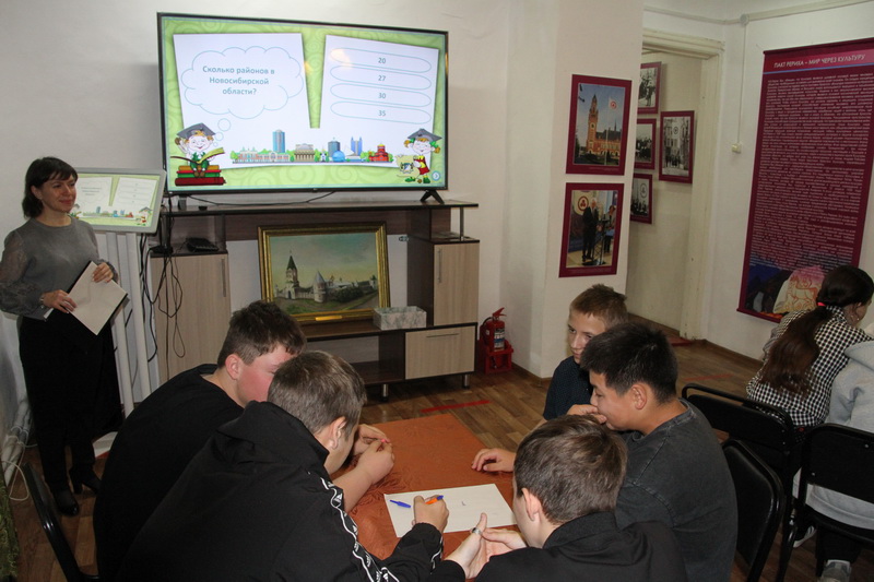 Не менее интересной и познавательной для наших гостей стала интеллектуальная игра «Столица Сибири-Новосибирск» в рамках программы «Пушкинская карта». Активными участниками этого мероприятия стала команда знатоков Красносельской школы Чановского района. Ребята смогли вспомнить не только историю любимого города, но и проявить смекалку и находчивость, вспоминая знаменитых людей и его достопримечательности.