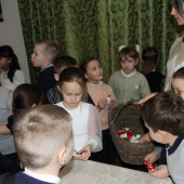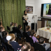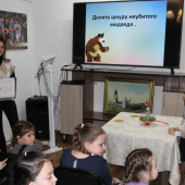 Ребята узнали о том, что культ медведя существует у многих народов. В давние времена медведь был важным символом для народов, которые населяли Сибирь. Они отмечали День Медведя несколькими днями празднования, включая хороводы и гонки на оленьих упряжках. Также ребята познакомились с гербами городов, на которых изображен медведь, и родственниками бурого медведя с других частей света.